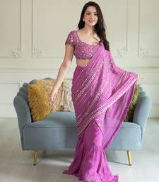 Magenta embroidered georgette saree