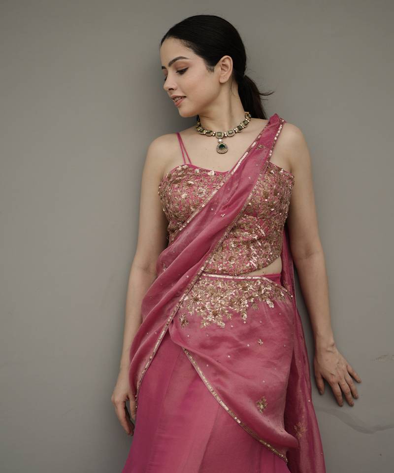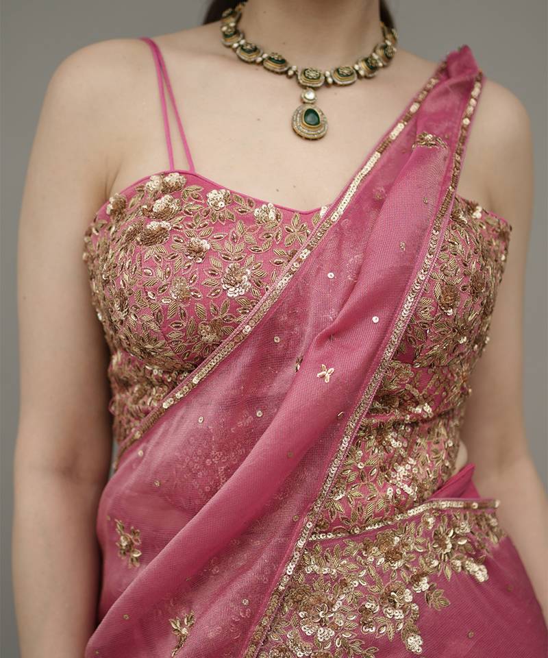 | • | Saree | : | Color- Pink / Fabric- Tissue |