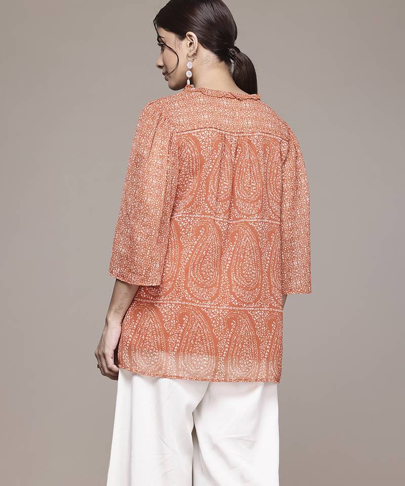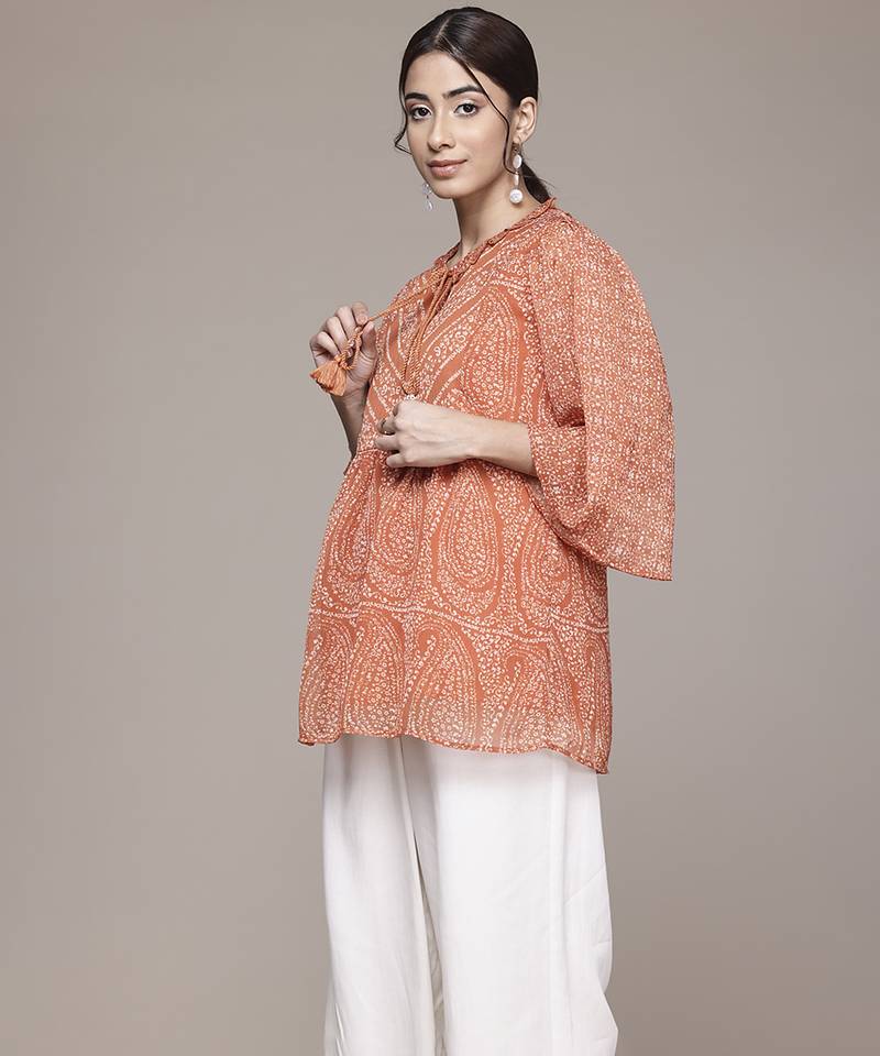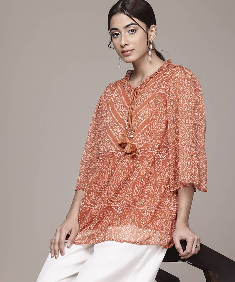 | Product Description | This Orange Chiffon Kurta Features Printed Work On A Lightweight And Flowy Fabric. The Chiffon Material Ensures A Soft Drape And Comfortable Wear, Making It Suitable For Casual Outings And Festive Occasions. Quarter Sleeves Provide A Balanced And Practical Fit. The Printed Design Adds Visual Texture While Maintaining A Clean And Structured Appearance. The Stitched Construction Ensures A Ready To Wear Form. The Orange Shade Enhances Styling Flexibility And Pairs Well With Different Bottoms. This Kurta Combines Breathable Fabric With Consistent Printed Detailing. |