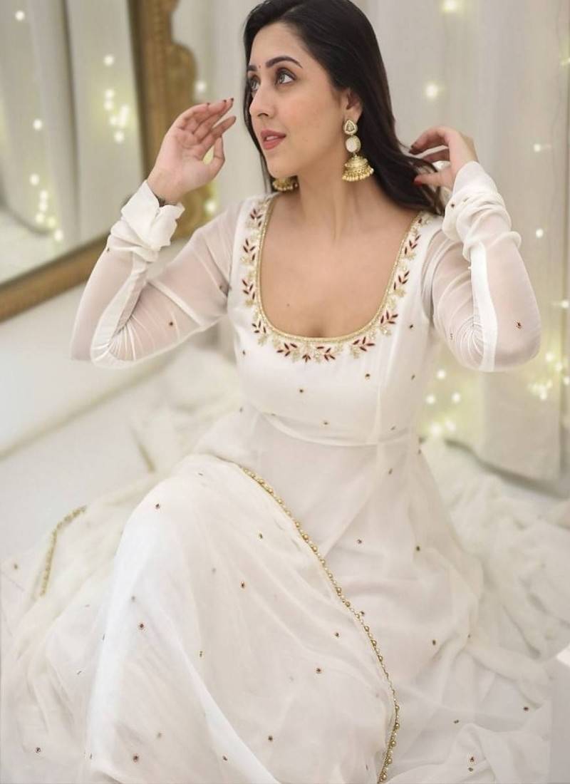 | Product Name | Anarkali Style White Georgette Gown With Sequence Embroidery & Dupatta For Women | |
