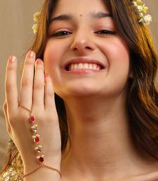 | Product Description | This Gold Plated Kundan Haath Phool Is Highlighted With Striking Red Stones For A Bold And Luxurious Look. Intricately Designed To Link Ring And Bracelet, It Enhances Bridal And Festive Ensembles. A Perfect Accessory To Accentuate Hand Elegance With Traditional Beauty And Refined Craftsmanship.