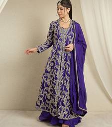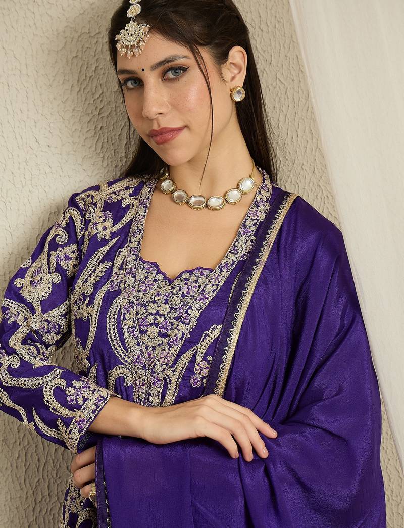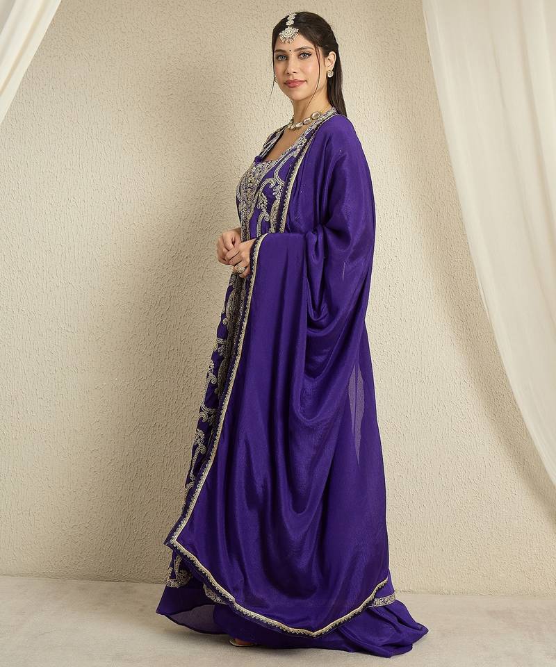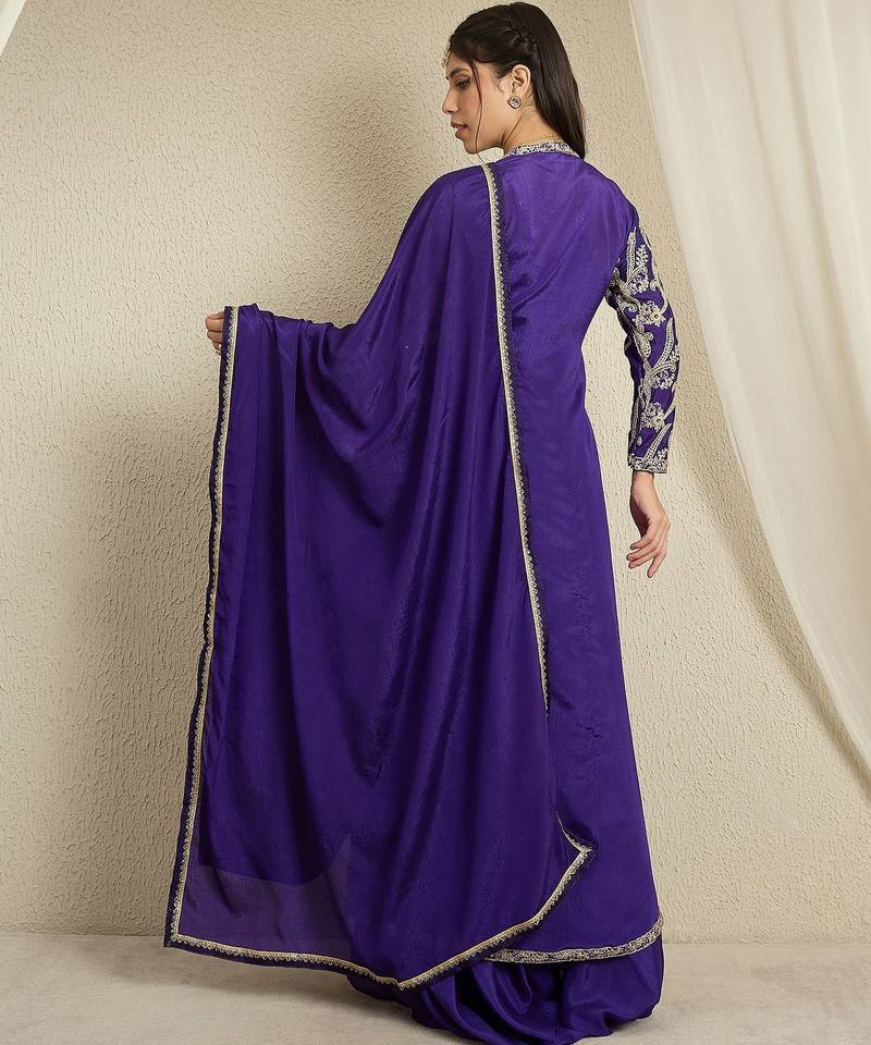 | Product Name | Purple Chinon Top With Bottom 3/4 Sleeve Embroidered A Line Jacket | |