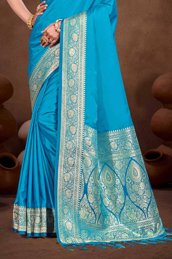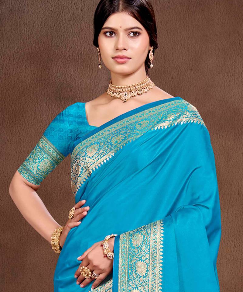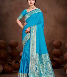 Sky blue silk blend woven work traditional saree