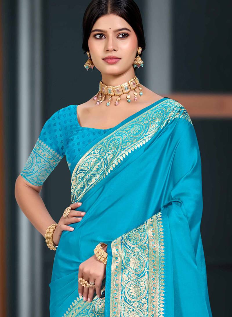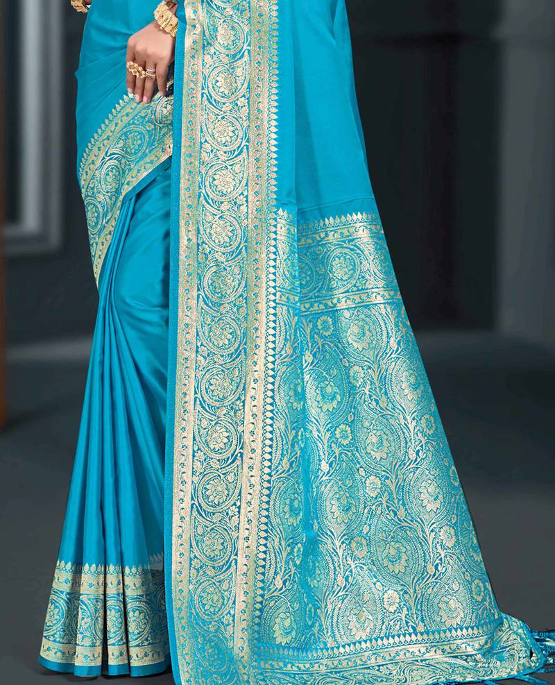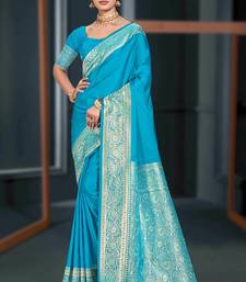 Sky blue silk blend woven work traditional saree