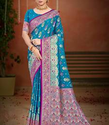 Product Name Teal Blue Satin Silk Blend Woven Work Traditional Saree