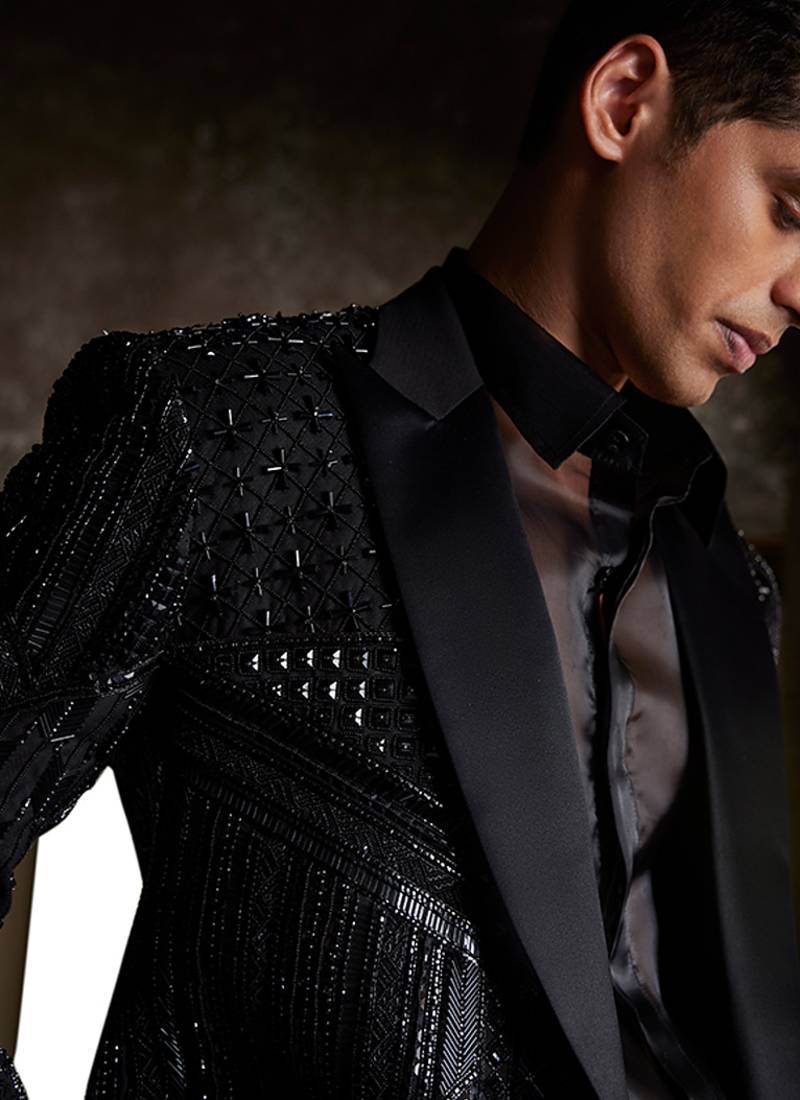 | Product Description | This Black Embroidered Silk Tuxedo Set Exudes Timeless Elegance And Refined Sophistication. Crafted From Luxurious Silk Fabric, It Features Intricate Embroidery That Adds A Rich, Statement Touch. Perfect For Formal Events And Evening Occasions, It Offers A Sharp Silhouette, Premium Comfort, And Classic Formal Appeal.