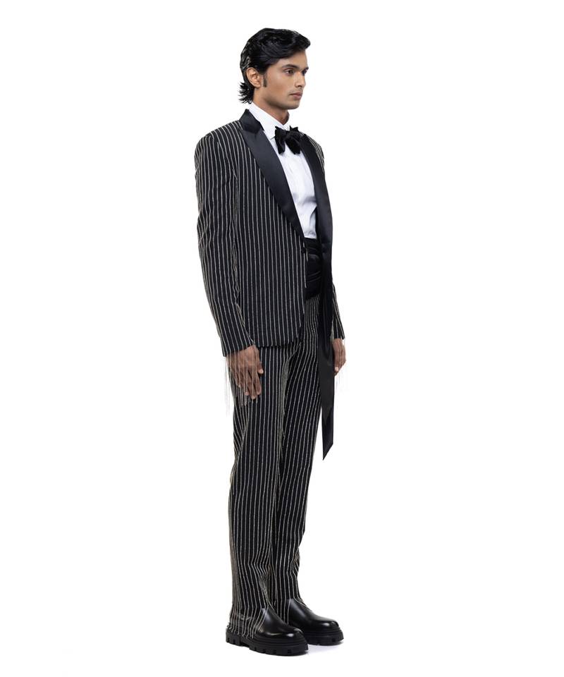 Black embroidered woolen blends tuxedo set