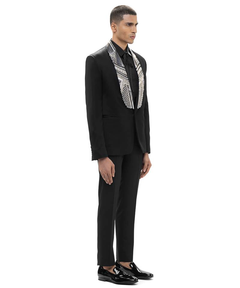 | Product Description | This Black Embroidered Woolen Blend Tuxedo Set Embodies Refined Sophistication With A Winter Ready Appeal. Crafted From A Premium Woolen Blend, It Features Elegant Embroidery That Enhances Its Luxurious Look. Ideal For Formal Evenings And Special Occasions, It Offers Warmth, Comfort, And A Sharp, Timeless Silhouette.