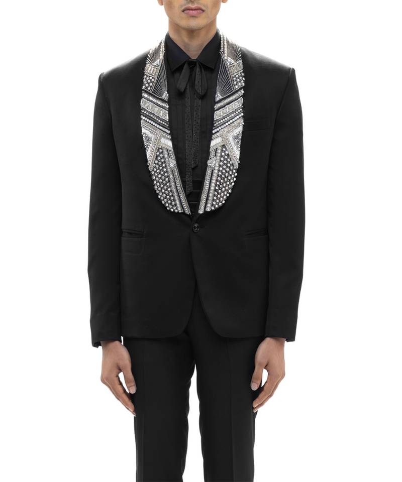 | Product Name | Black Embroidered Woolen Blends Tuxedo Set | |