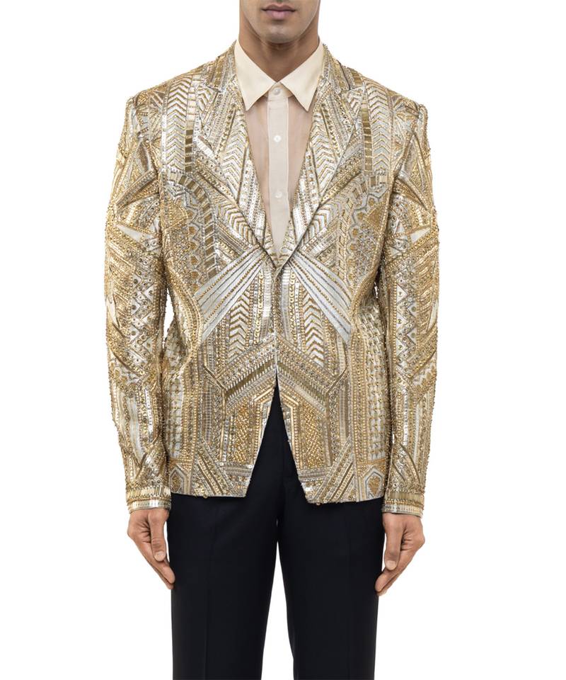 Gold embroidered silk tuxedo set