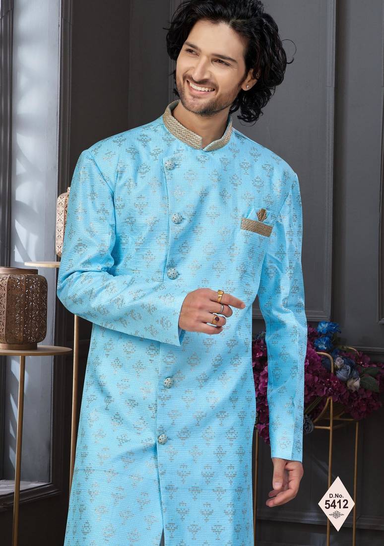 | Product Name | Blue Faux Jacquard Embroidered Sherwani Set | |