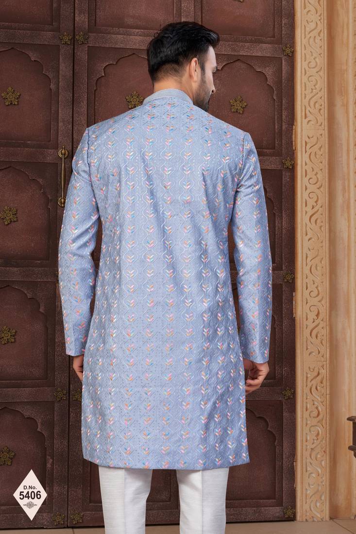 | Product Description | Full Computer Amrodery, Indowestern Sherwani Set With Less, Thred, Stone Work & Fancy Botton |
