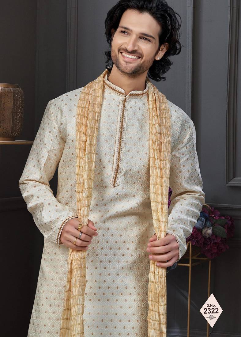 | Product Description | Havy Banarasi Jackard With Thred, & Less Work Kurta Pajama Set |