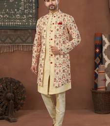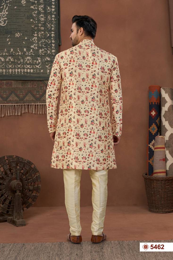 | Product Description | Digital Printed Jacket Style Attached Indowestern Sherwani Set With Thred Work & Fancy Batan |
