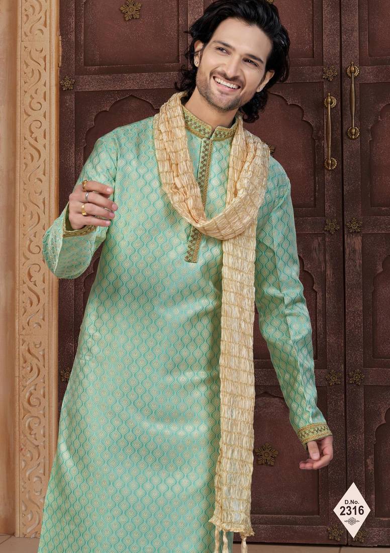 | Product Description | Havy Banarasi Jackard With Thred, & Less Work Kurta Pajama Set |