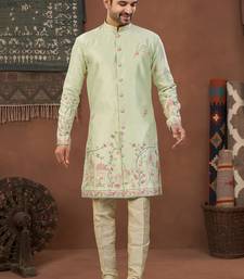 | Product Name | Pista Green Classic Sherwani Set With Daman Flower Booti Computer Amrodery Work With Less Work, & Fancy Botton | |