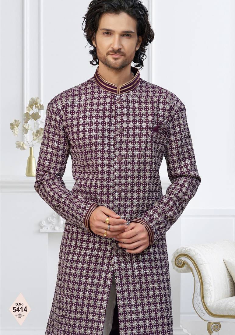 | Product Name | Wine Faux Jacquard Embroidered Sherwani Set | |
