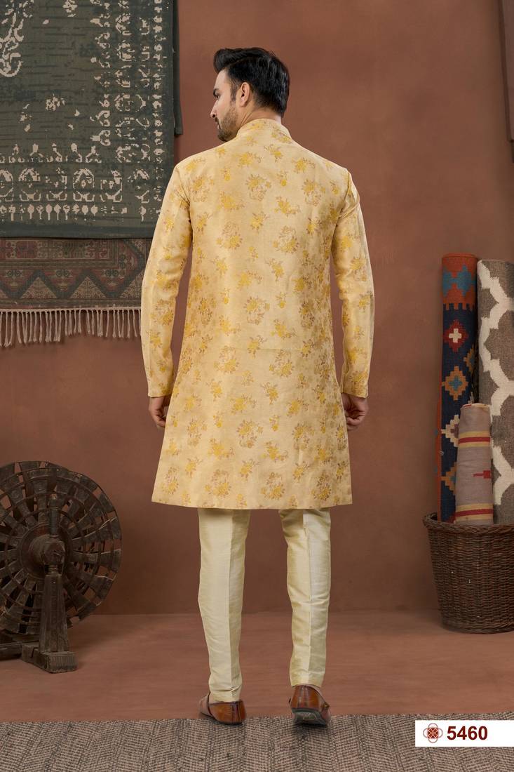 | Product Name | Yellow & Fownhavy Jacket Style Attached Indowestern Set With Thred Work & Fancy Botton | |
