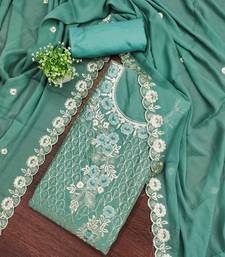 Sea-green embroidered georgette semiStitched churidar dress-materials semi stitched
