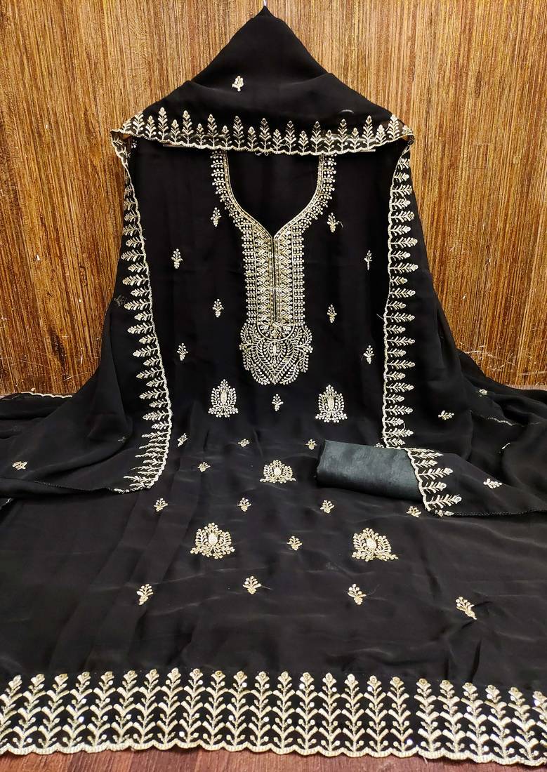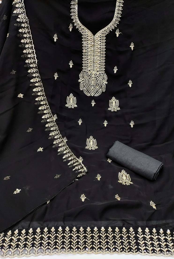 | Product Name | Black Embroidered Georgette Semi Stitched Churidar Dress Materials | |