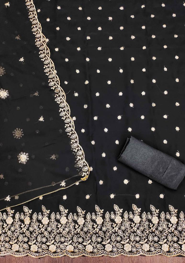 Product Name Black Embroidered Georgette Semi Stitched Churidar Dress Materials