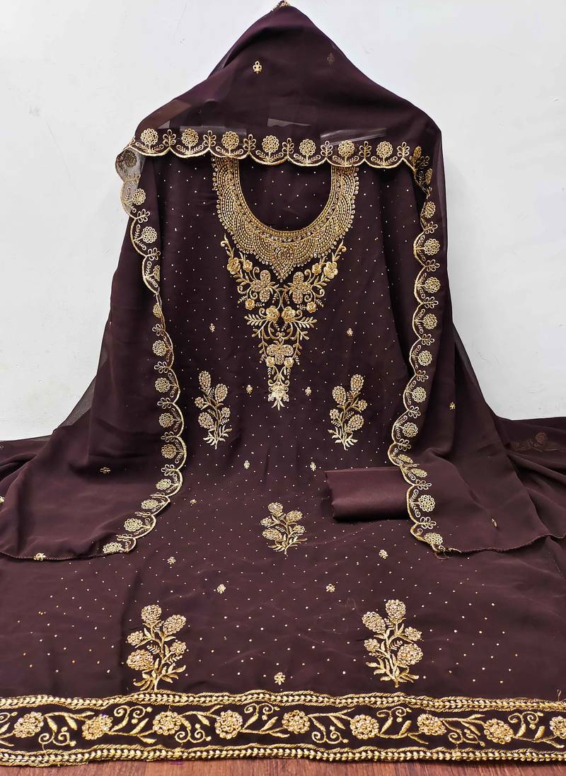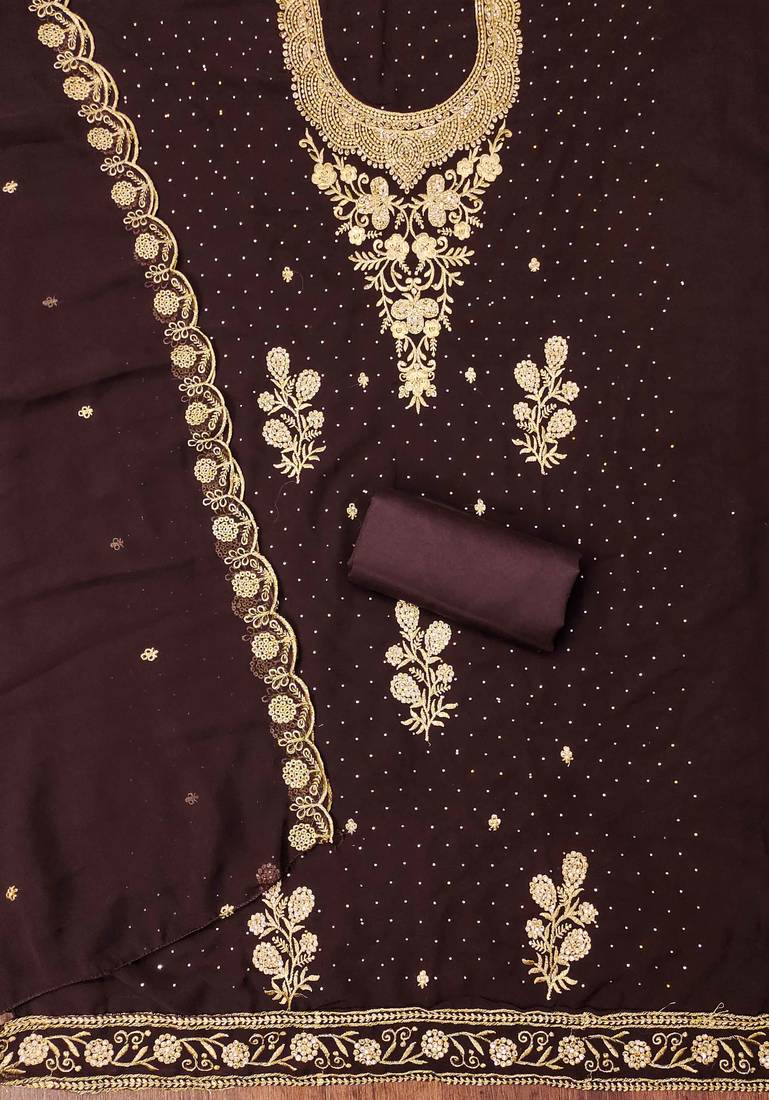 | Product Name | Brown Embroidered Georgette Semi Stitched Churidar Dress Materials | |