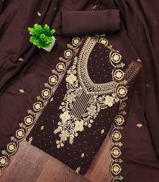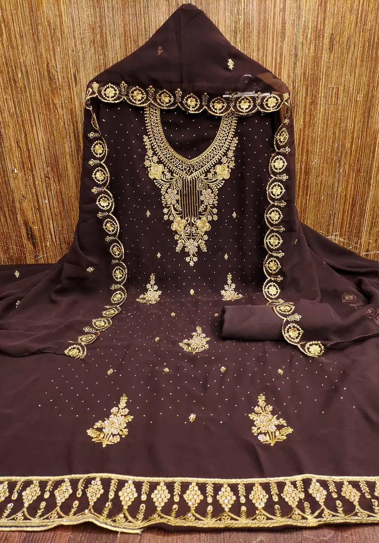 Brown embroidered georgette semi stitched churidar dress-materials