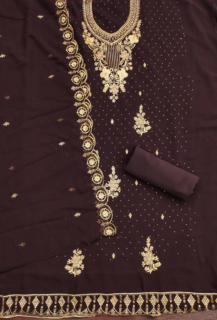 | Product Name | Brown Embroidered Georgette Semi Stitched Churidar Dress Materials | |
