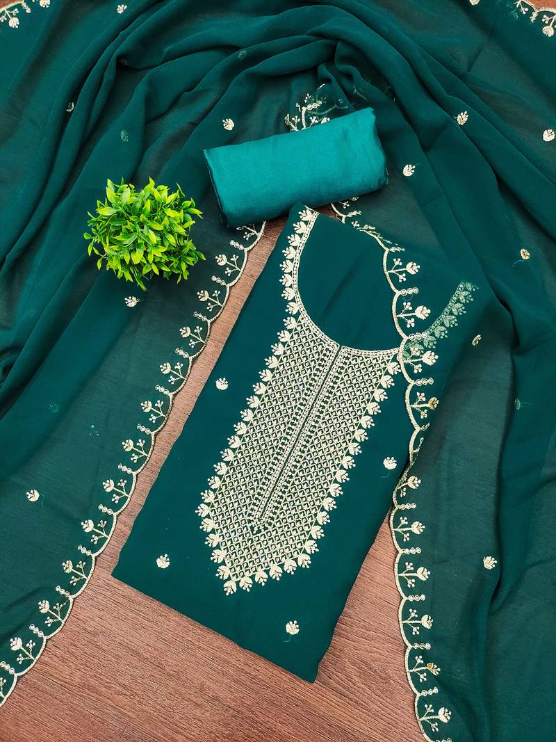 Product Name Green Embroidered Georgette Semi Stitched Churidar Dress Materials