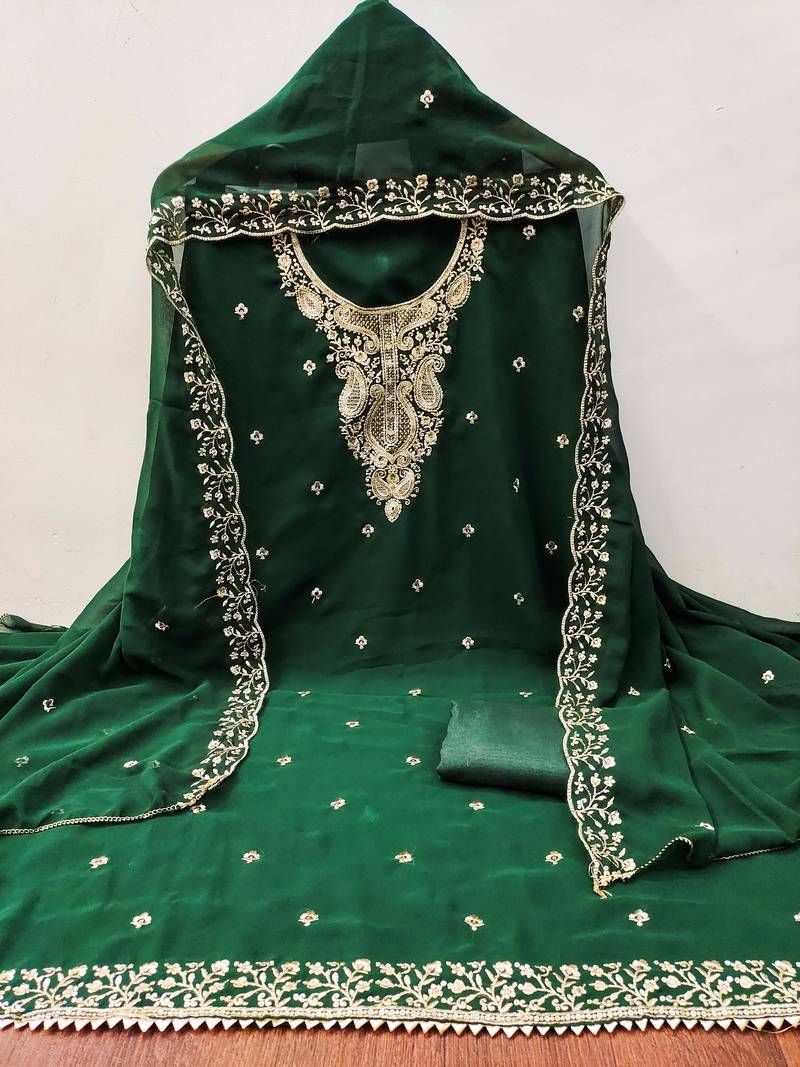 | Product Name | Green Embroidered Georgette Semi Stitched Churidar Dress Materials | |