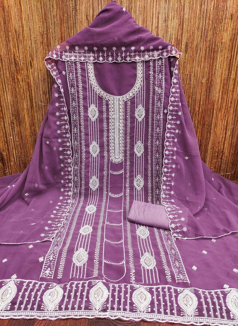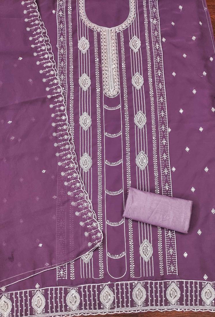 Lavender embroidered georgette semi stitched churidar dress-materials