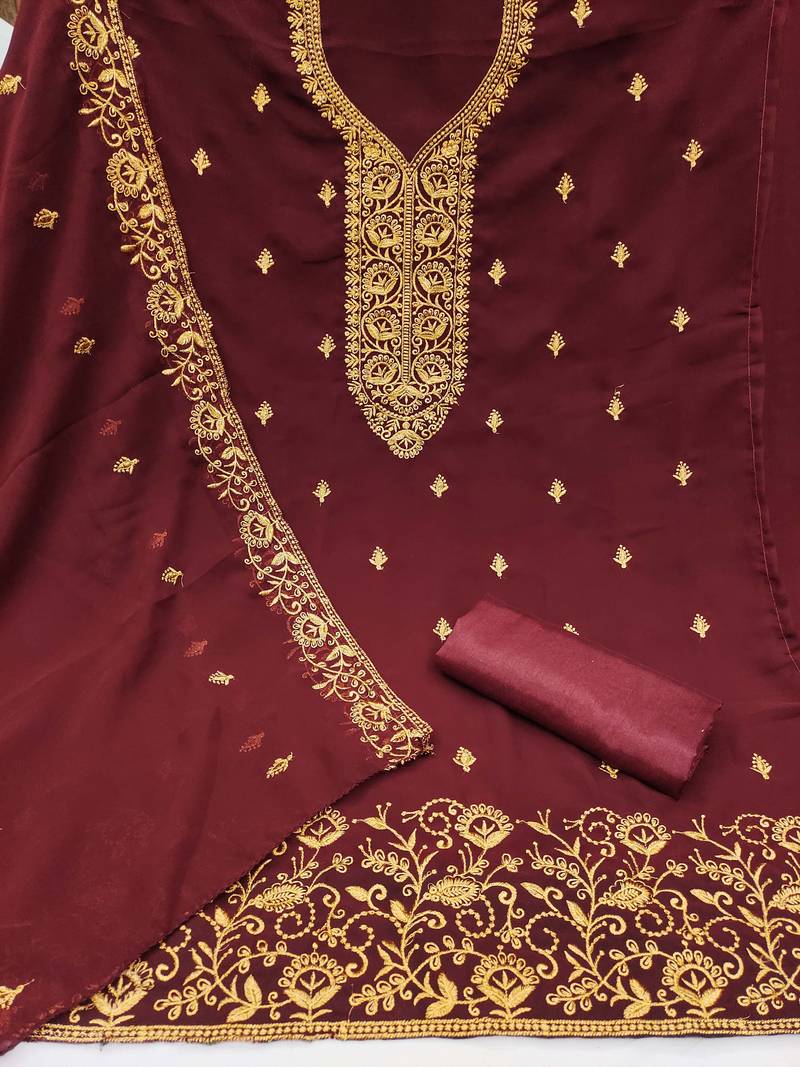 Product Name Maroon Embroidered Georgette Semi Stitched Churidar Dress Materials