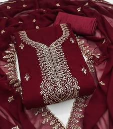 Maroon embroidered georgette semi stitched churidar dress-materials