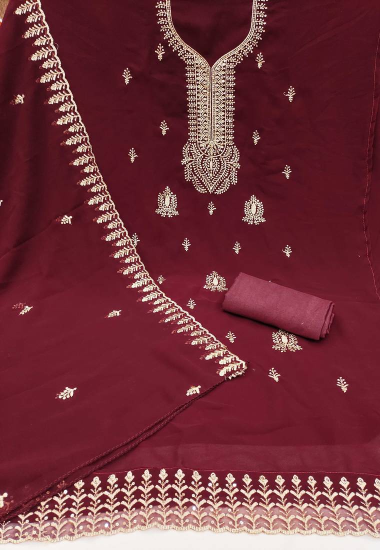 | Product Name | Maroon Embroidered Georgette Semi Stitched Churidar Dress Materials | |