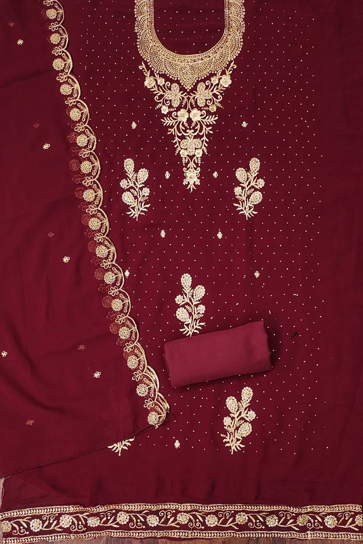 Product Name Maroon Embroidered Georgette Semi Stitched Churidar Dress Materials