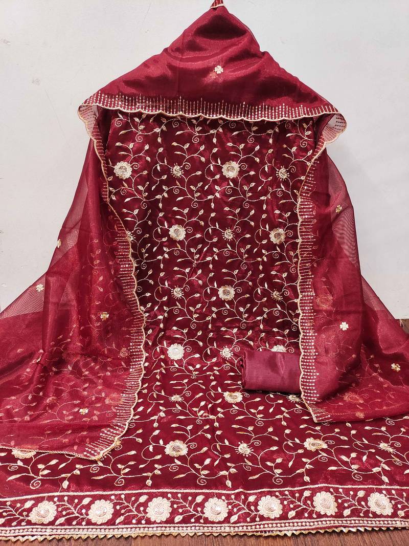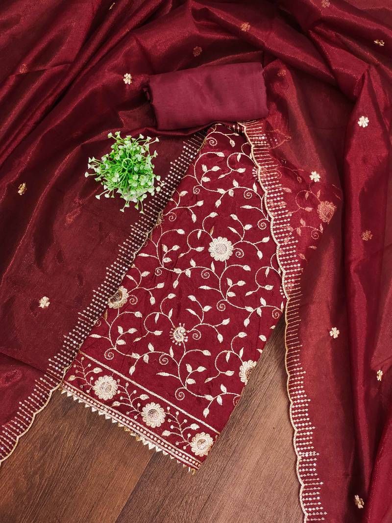 | Product Description | Exclusive Heavy Zari Sequence Embroidery And Fancy Border With Embroidered Dupatta Straight Style 1.80 Mtr Unstitched Dress Material Top Of Maroon Colour Twill Net Fabric With 2 Mtr Santoon As Lining Inner Fabric Also Including 3.80 Mtr Unstiched Bottom Material Of Maroon Colour Santoon Fabric With 2.10 Mtr Dupatta Of Maroon Colour Twill Net Fabric By Shadow & Saining Brand |