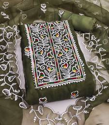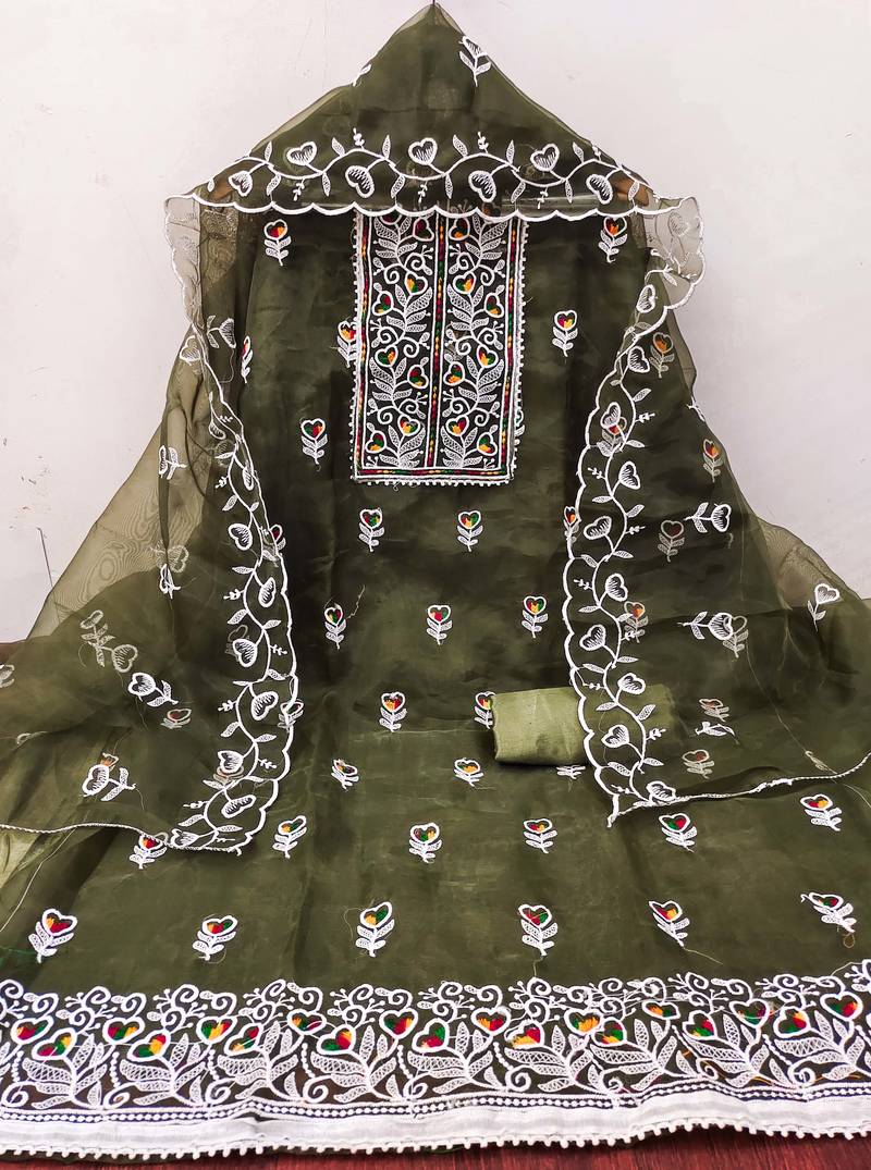 Mehendi embroidered organza semi stitched churidar dress-materials