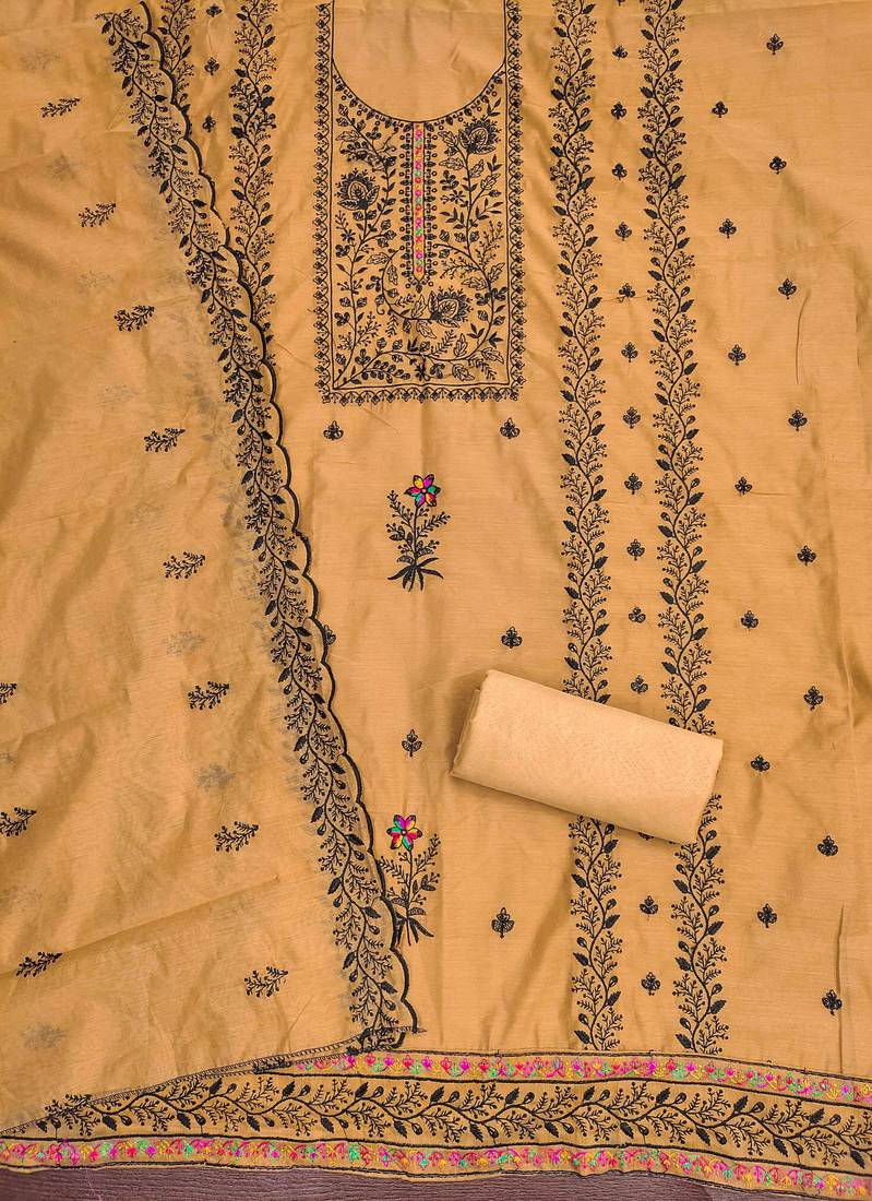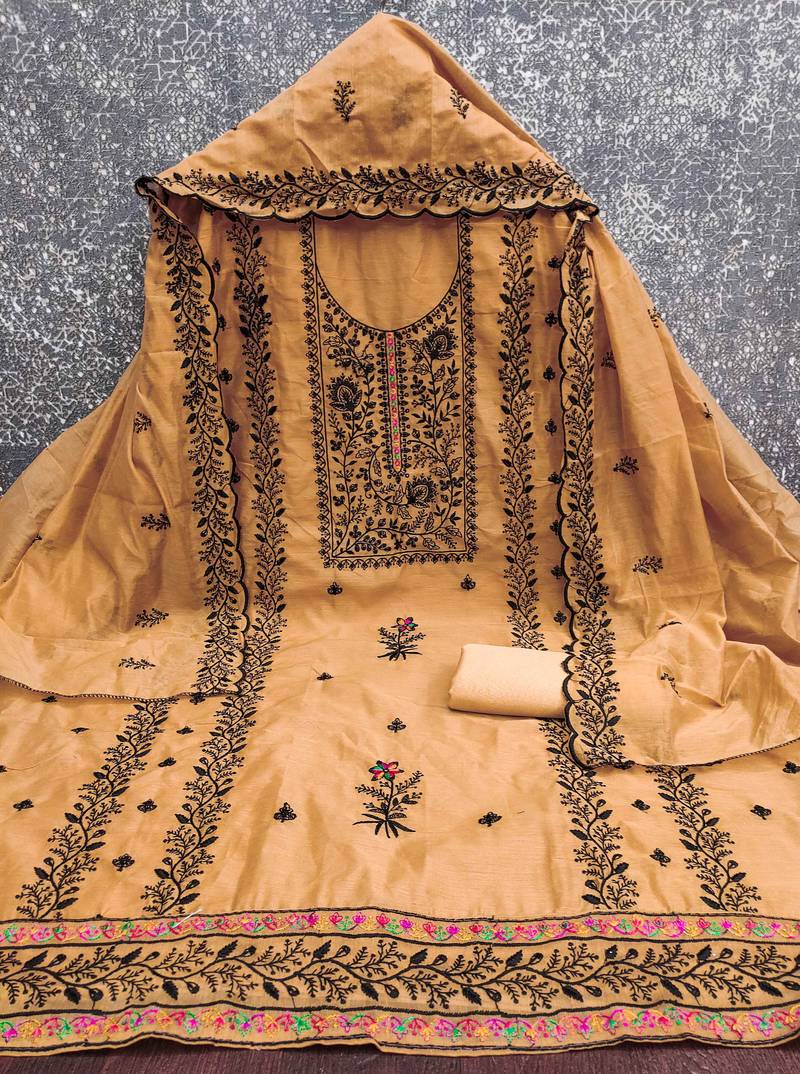 | Product Description | Luxury Heavy Thread Embroidery And Fancy Border With Designer Embroidered Dupatta Straight Style 2.00 Mtr Unstitched Dress Material Top Of Mustard Colour Chanderi Cotton Fabric With 2 Mtr Santoon As Lining Inner Fabric Also Including 3.60 Mtr Unstiched Bottom Material Of Mustard Colour Santoon Fabric With 2.00 Mtr Dupatta Of Mustard Colour Chanderi Cotton Fabric By Shadow & Saining Brand |