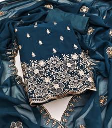 Navy-blue embroidered georgette semi stitched churidar dress-materials