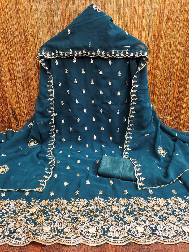 | Product Description | Ethereal Heavy Thread Embroidery And Fancy Border With Embroidered Dupatta Straight Style 2.00 Mtr Unstitched Dress Material Top Of Navy Blue Colour Georgette Fabric With 2 Mtr Santoon As Lining Inner Fabric Also Including 3.60 Mtr Unstiched Bottom Material Of Navy Blue Colour Santoon Fabric With 2.00 Mtr Dupatta Of Navy Blue Colour Georgette Fabric By Shadow & Saining Brand |