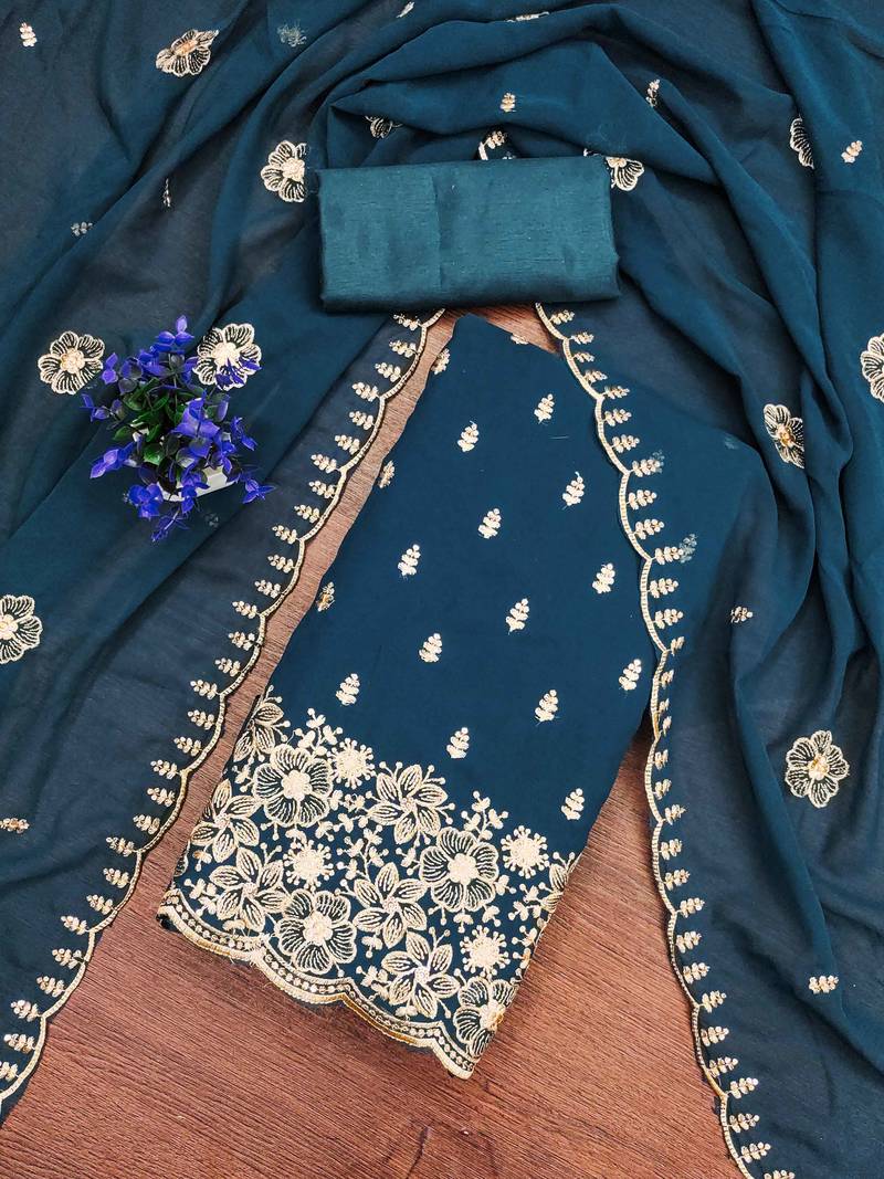 | Product Name | Navy Blue Embroidered Georgette Semi Stitched Churidar Dress Materials | |