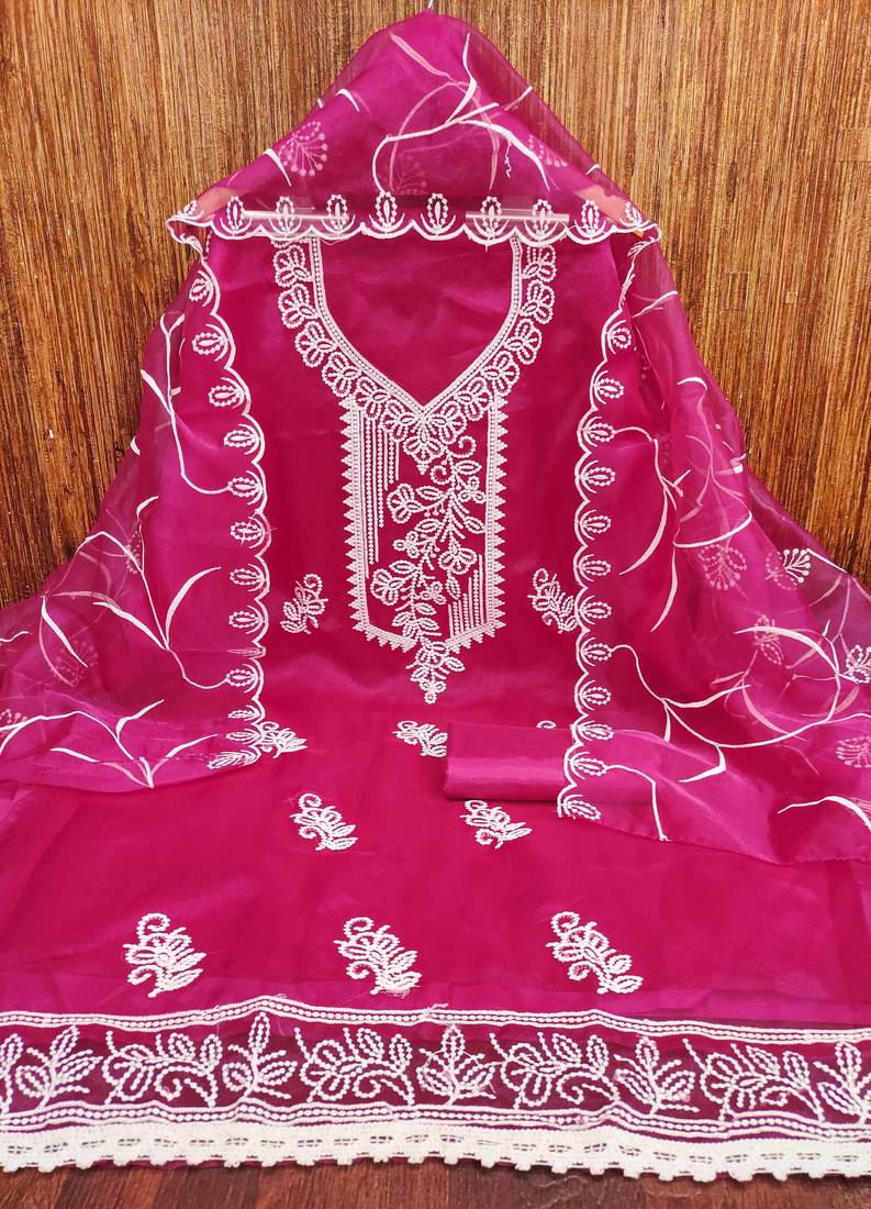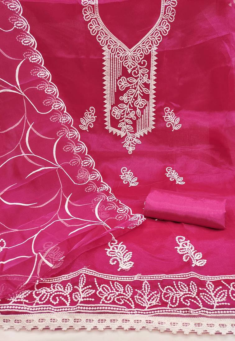 | Product Name | Pink Embroidered Organza Semi Stitched Churidar Dress Materials | |
