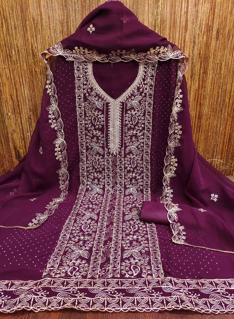 | Product Name | Purple Embroidered Georgette Semi Stitched Churidar Dress Materials | |