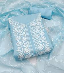 Sky-blue embroidered cotton semi stitched churidar dress-materials