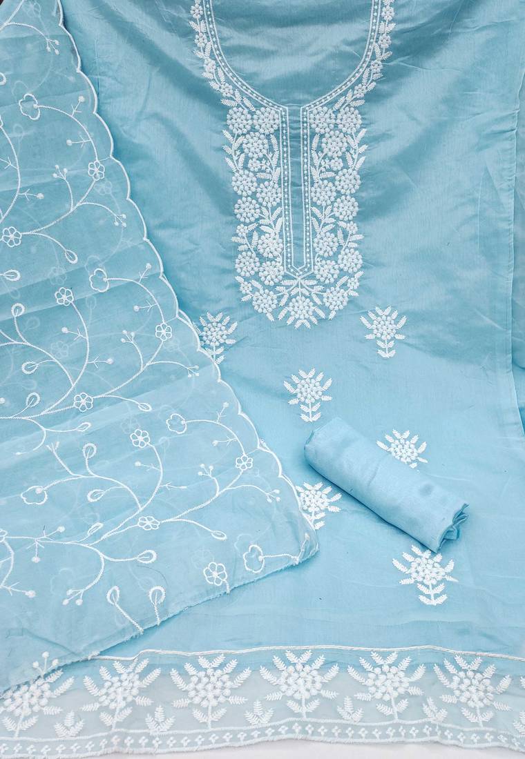 | Product Description | Awesome Heavy Thread Embroidery And Fancy Border With Designer Embroidered Dupatta Straight Style 1.80 Mtr Unstitched Dress Material Top Of Sky Blue Colour Chanderi Cotton Fabric With 2 Mtr Santoon As Lining Inner Fabric Also Including 3.60 Mtr Unstiched Bottom Material Of Sky Blue Colour Santoon Fabric With 2.10 Mtr Dupatta Of Sky Blue Colour Chanderi Cotton Fabric By Shadow & Saining Brand |