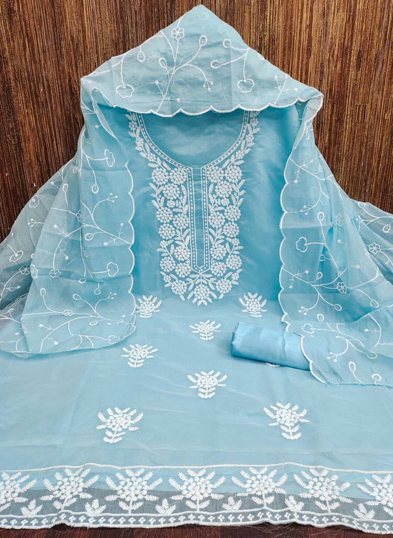| Product Name | Sky Blue Embroidered Cotton Semi Stitched Churidar Dress Materials | |