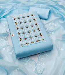 | Product Name | Sky Blue Embroidered Cotton Semi Stitched Churidar Dress Materials | |
