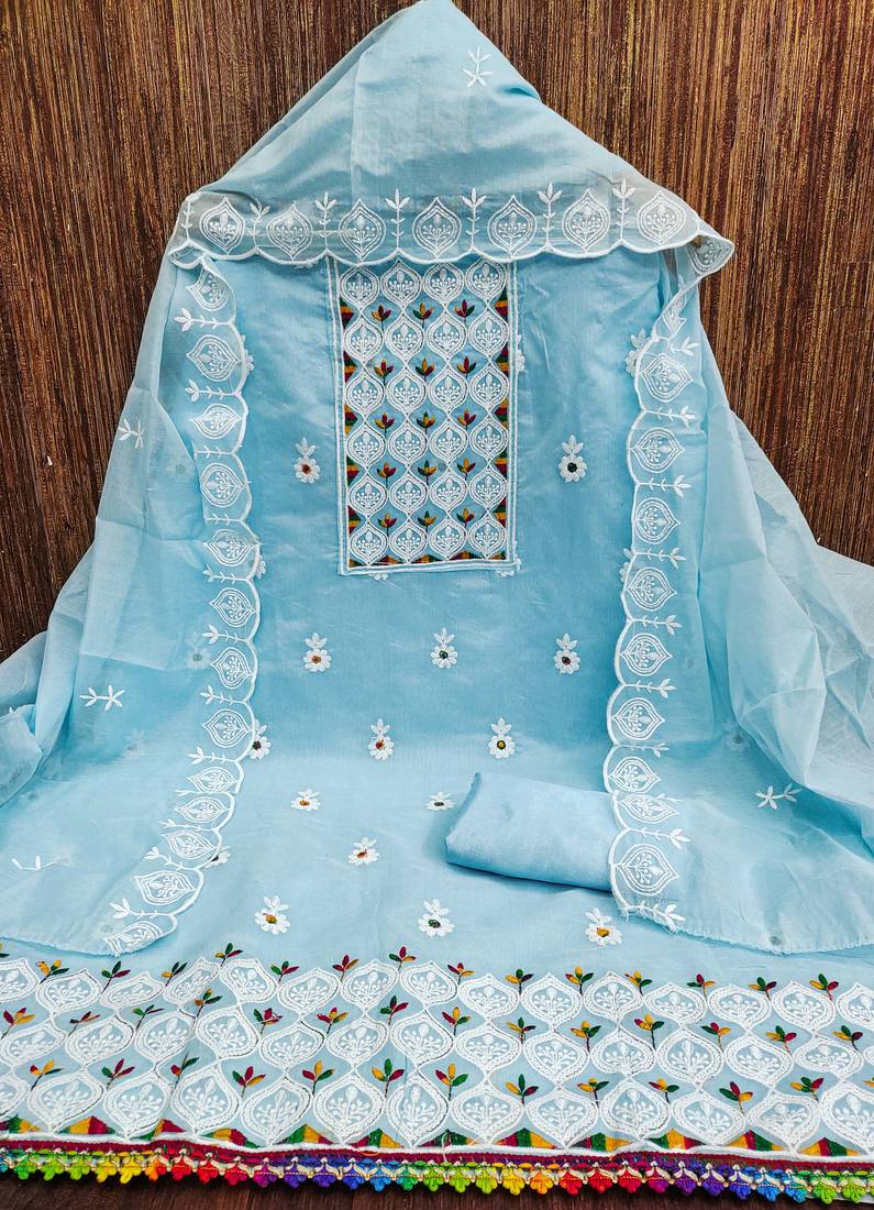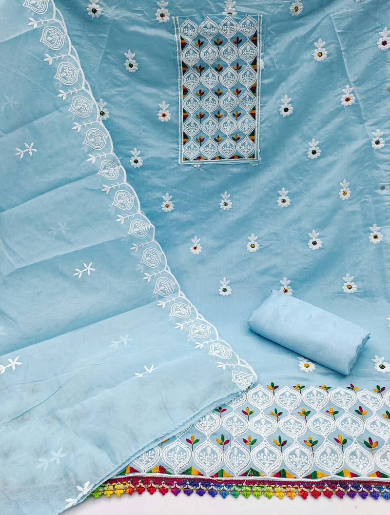 | Product Description | Exclusive Heavy Thread Embroidery And Fancy Border With Designer Embroidered Dupatta Straight Style 1.80 Mtr Unstitched Dress Material Top Of Sky Blue Colour Chanderi Cotton Fabric With 2 Mtr Santoon As Lining Inner Fabric Also Including 3.60 Mtr Unstiched Bottom Material Of Sky Blue Colour Santoon Fabric With 2.10 Mtr Dupatta Of Sky Blue Colour Chanderi Cotton Fabric By Shadow & Saining Brand |