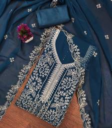 Teal-blue embroidered georgette semi stitched churidar dress-materials