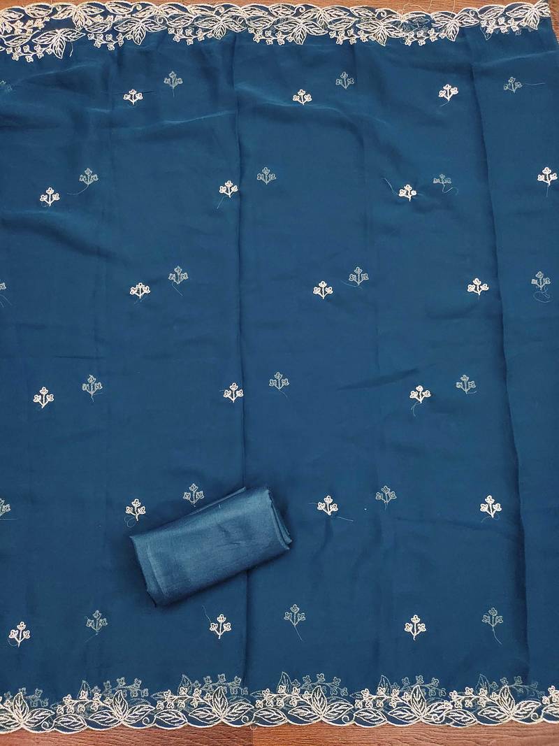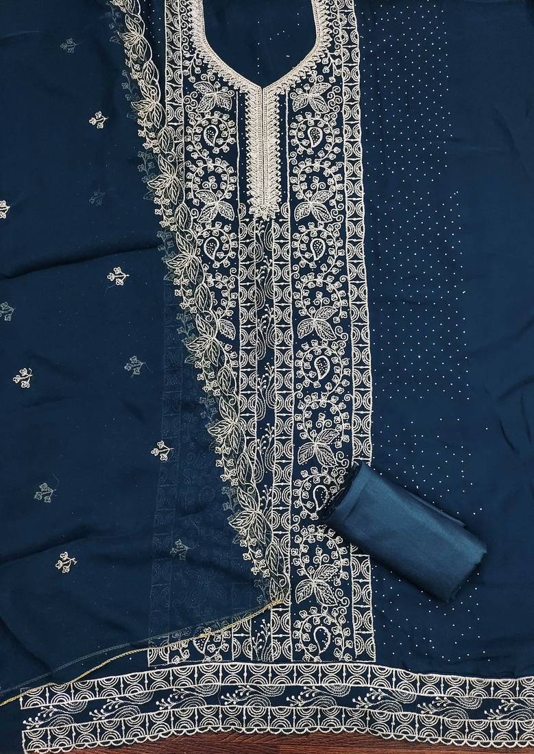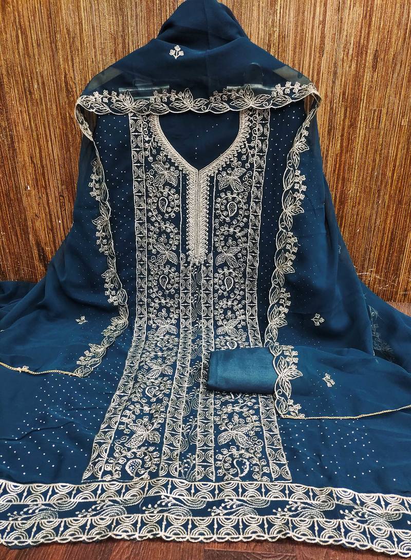 | Product Name | Teal Blue Embroidered Georgette Semi Stitched Churidar Dress Materials | |